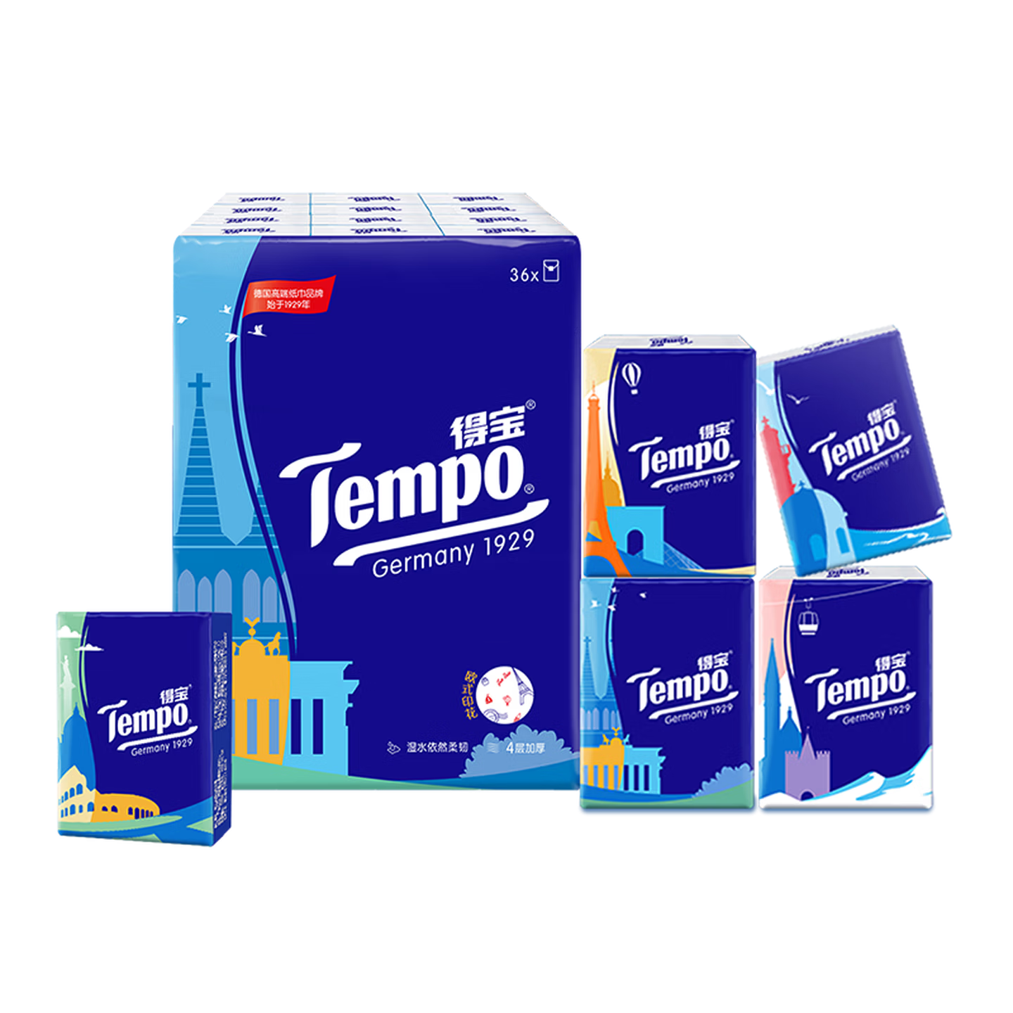 得宝欧式假日印花手帕纸,36包随身装,4层加厚,湿水不易破,100%原生木浆,无香温和不刺激,每张带精致印花,便携又体面,日常、差旅、聚会都能用~😉