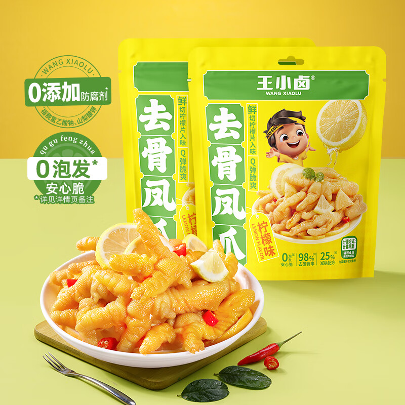 王小卤无骨凤爪~🍋柠檬味酸辣开胃,Q弹脆爽,去骨设计超方便,追剧、办公、解馋都绝配!0添加防腐剂+0泡发,吃得安心~独立小包装,随手一拿就能开吃!518g量贩装!