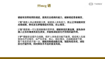 1″防”硒是人体必需微量元素,能提高人体免疫力,防止正常细胞突变成癌细胞,降低发生肿瘤癌症的风险,防止癌变。