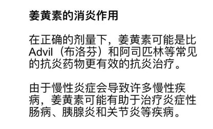 由于慢性炎症会导致许多慢性疾病,姜黄素可能有助于治疗炎症性肠病、胰腺炎和关节炎等疾病。