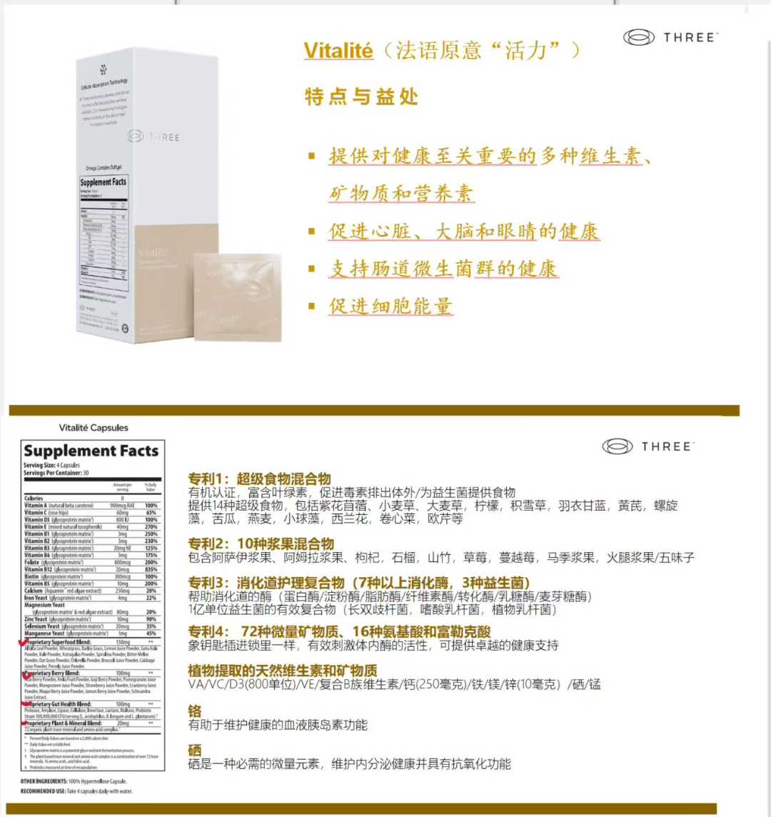 Vitalité is a powerful, daily supplement that works at the cellular level to deliver the essential nutrients your body needs to perform at its best every day.